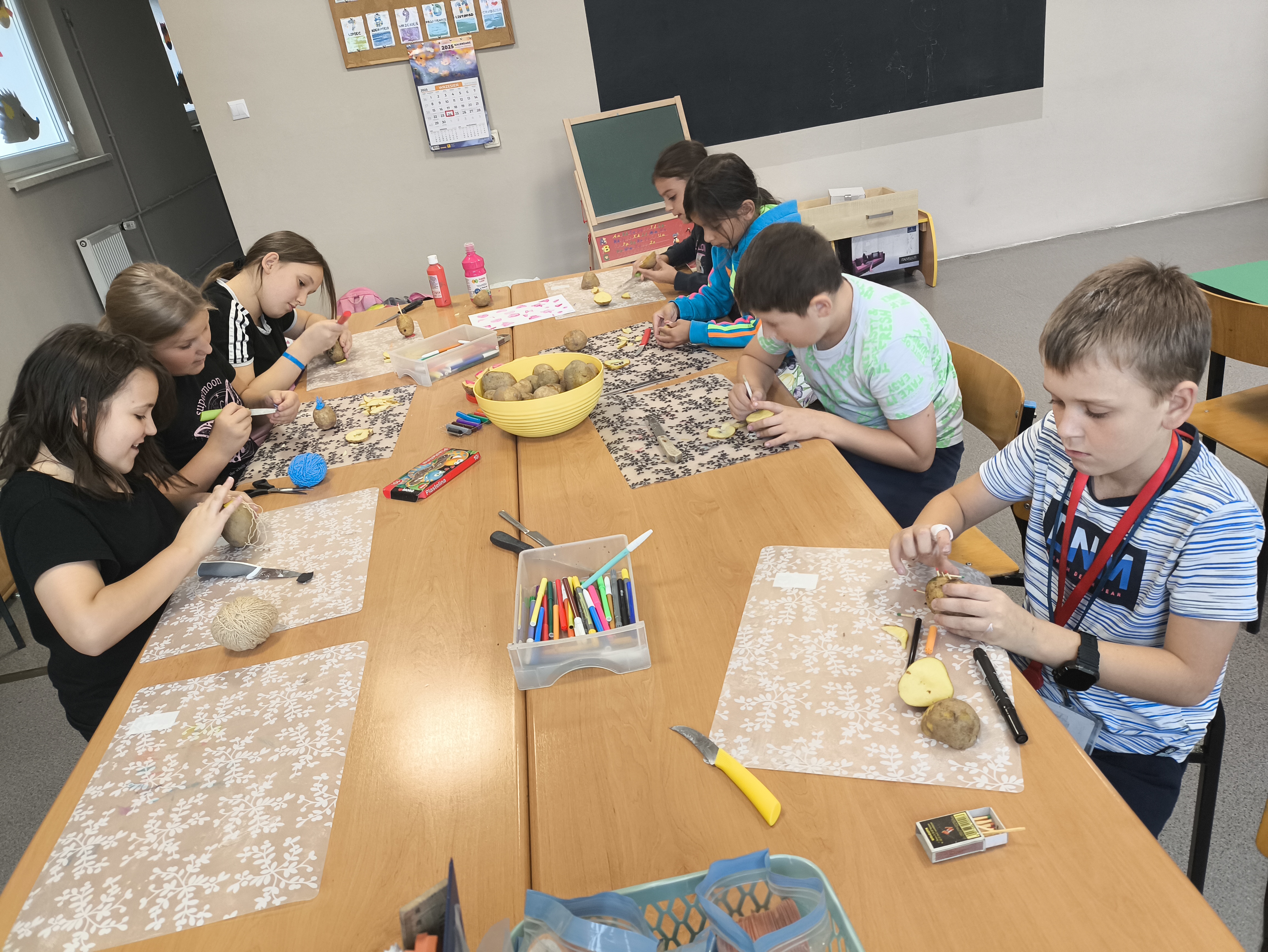 Kto by pomyślał, że zwykły ziemniak może być takim polem do popisu dla wyobraźni? Na zajęciach dzieci zamieniły bulwy w przepiękne pieczątki i urocze, wesołe ludziki! Każde dziecko wykazało się niesamowitym talentem i kreatywnością. Jesteśmy pod wrażeniem ich pomysłów i precyzji. Zobaczcie sami, jakie arcydzieła powstały!