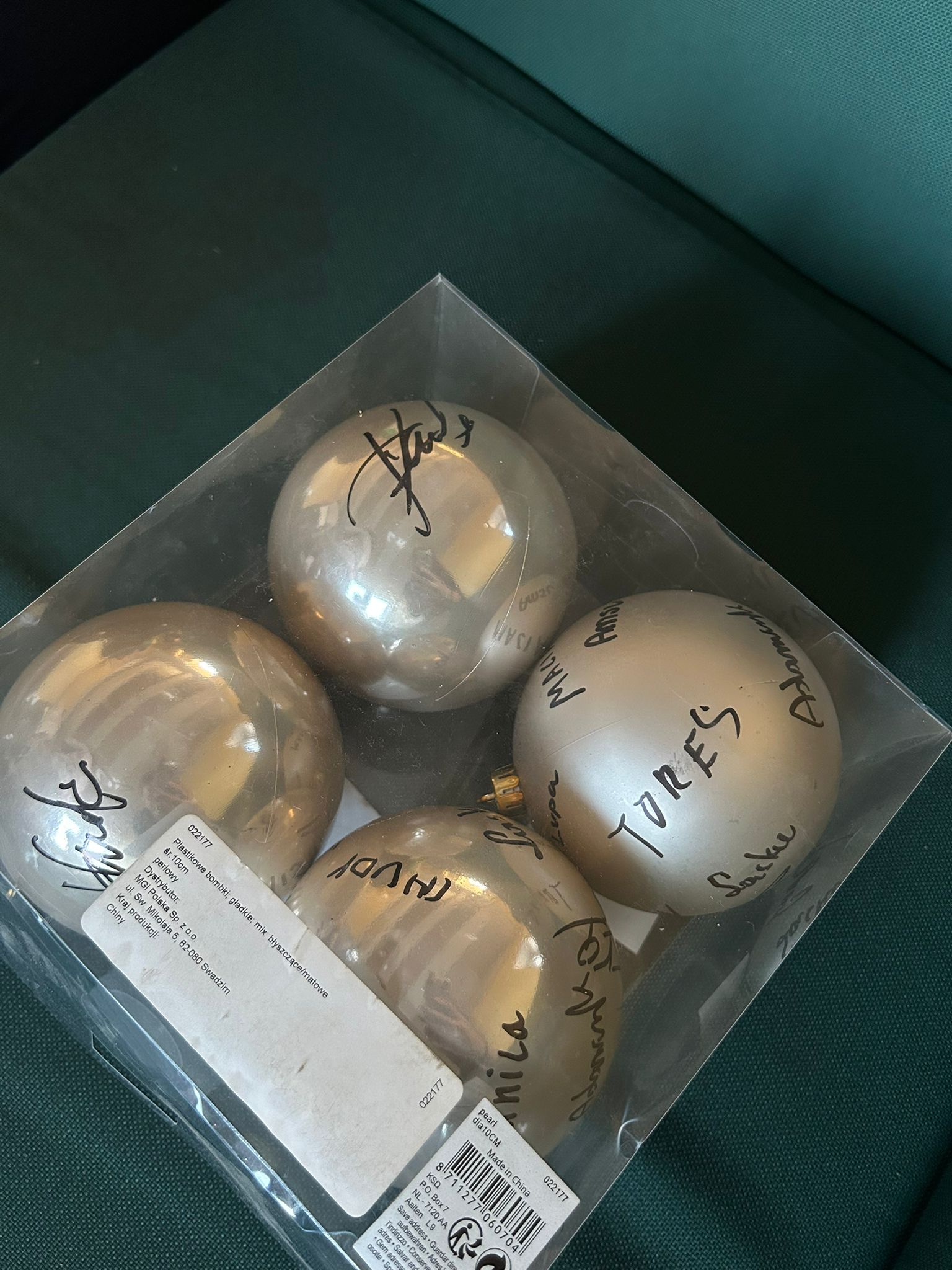 W prezencie otrzymaliśmy także wyjątkowe bombki z podpisami całej drużyny — już wkrótce zawisną one na naszej choince, dodając jej niepowtarzalnego sportowego charakteru.