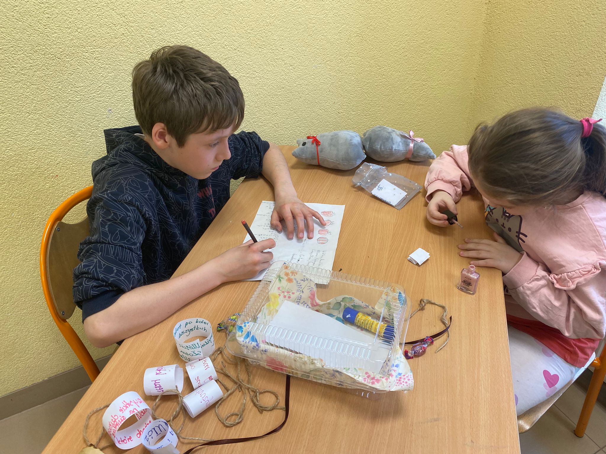 - Wyzwania pudełkowe: Tutaj pojawiła się odrobina dreszczyku emocji i kreatywności. Każdy musiał wykonać jakieś zadanie, zagadkę, wyzwanie. Tajemnicze pudełka sprawiły nam mnóstwo frajdy!