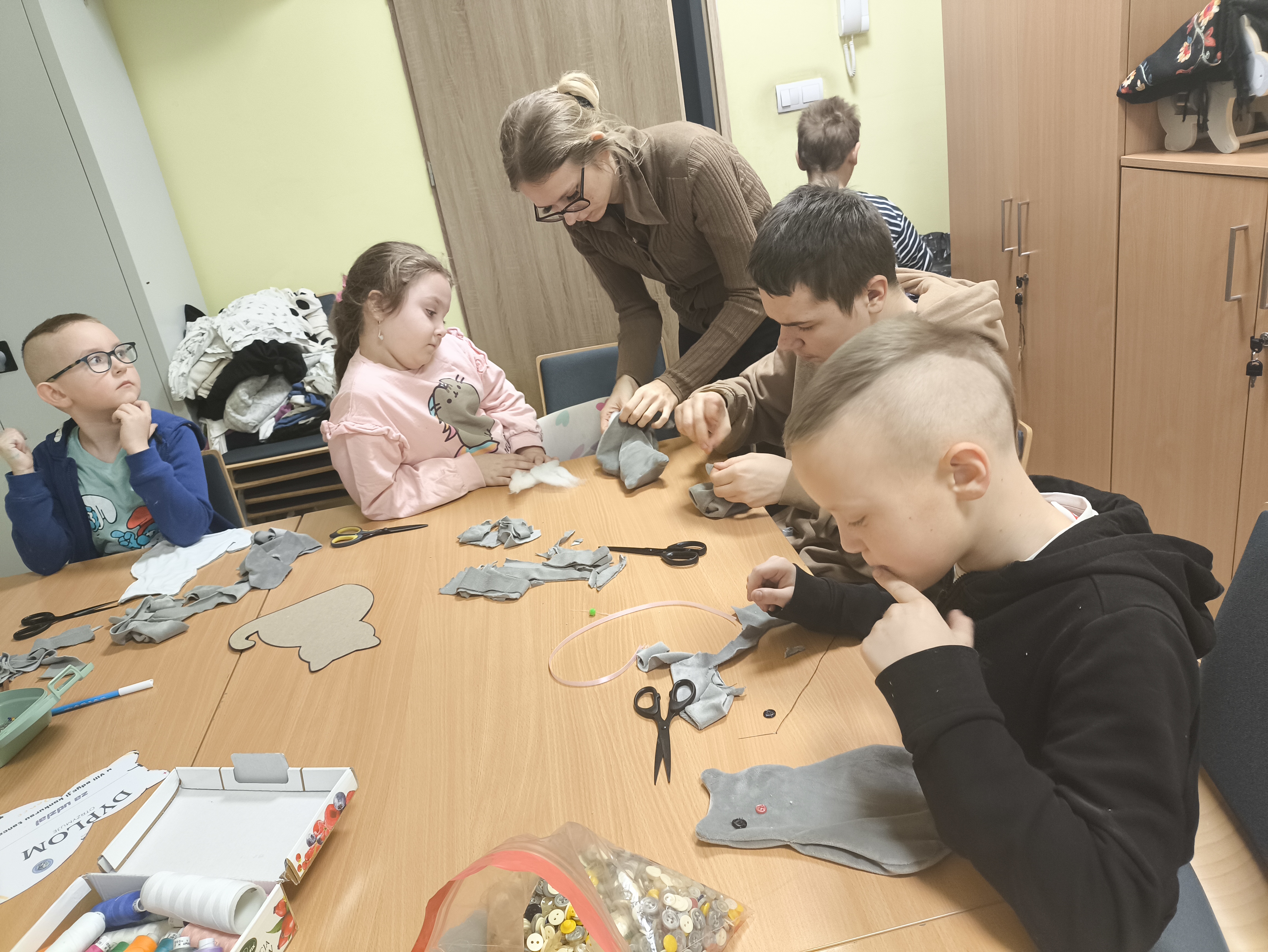 - Szycie kotów: Ostatnia grupa wykazała się niesamowitą cierpliwością i precyzją. Zobaczcie te uszyte przez nich cuda – każdy kot ma swój własny charakter!