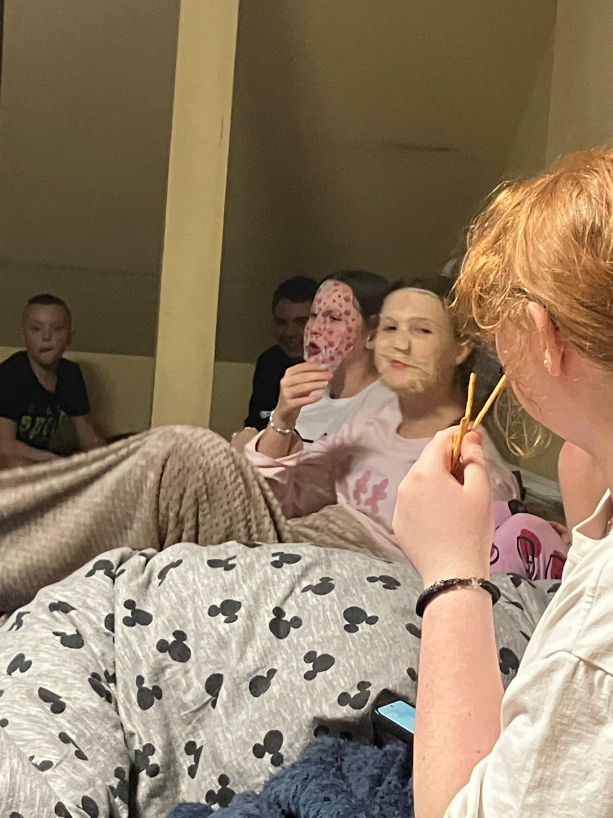 Ostatnia noc była pełna przygód. Wczoraj wieczorem mieliśmy salon piękności, emocjonujące gry komputerowe, a potem pyszna kolacja i relaksujący seans filmowy.